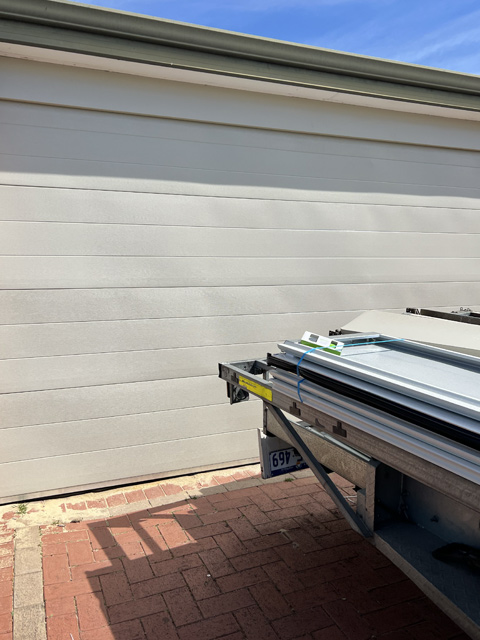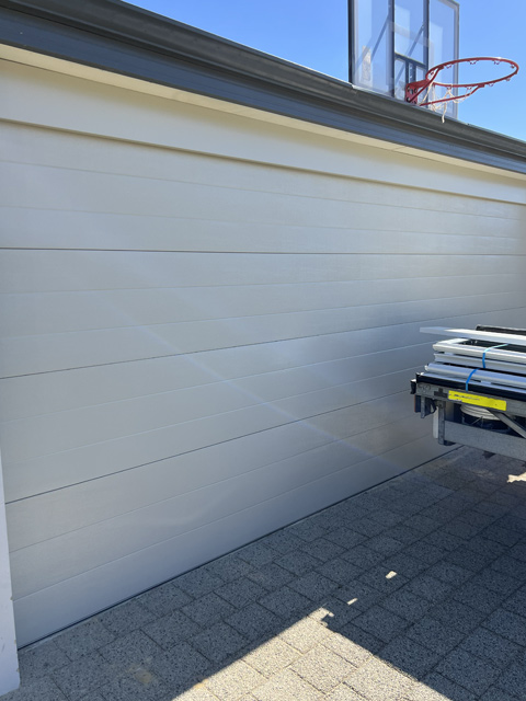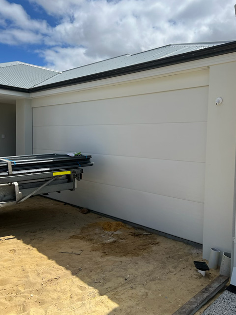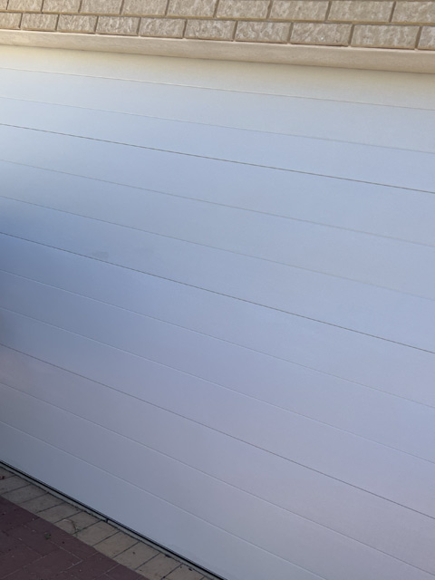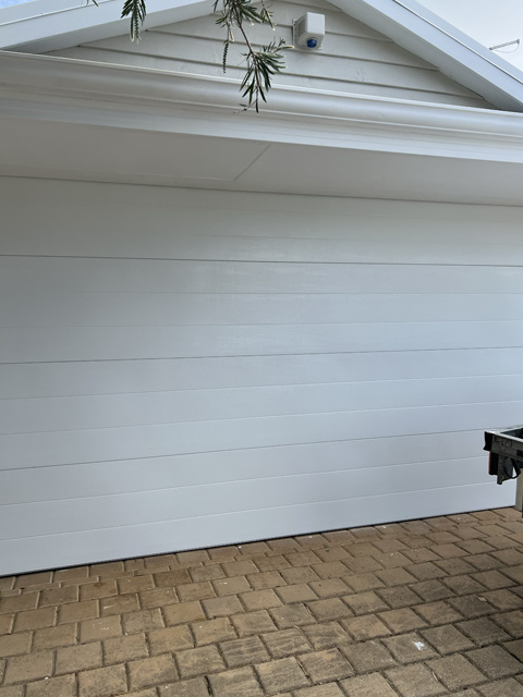Single Sectional door fitted in Dove White™ COLORBOND® with the Settler profile