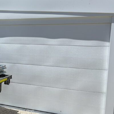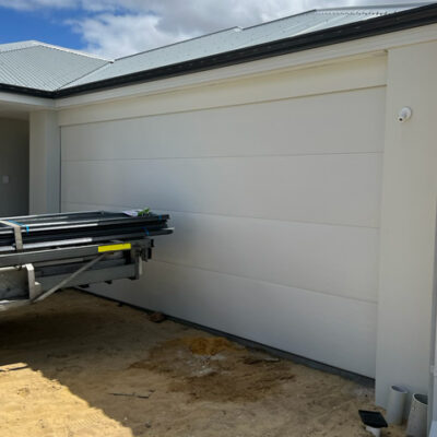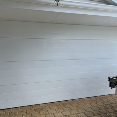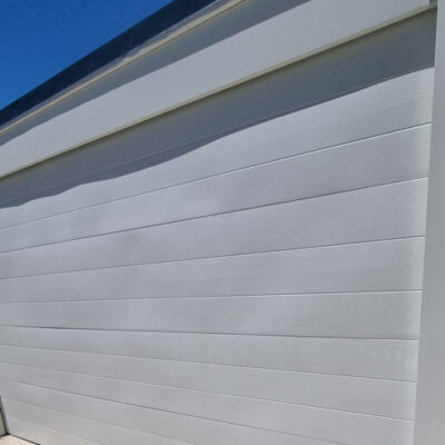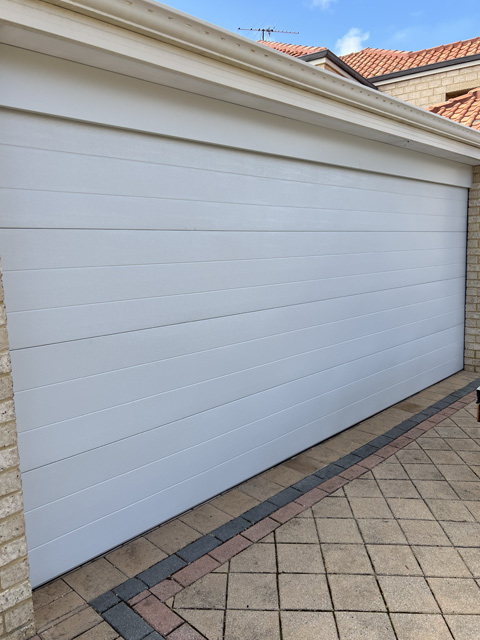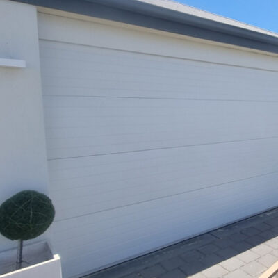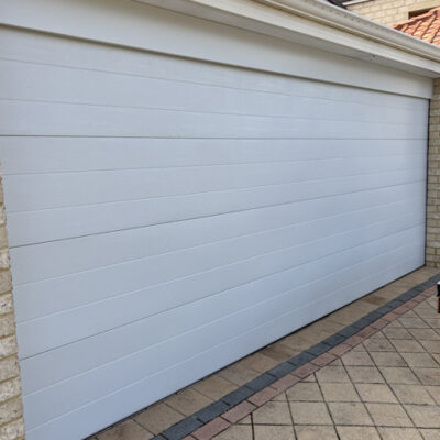 Double Sectional door fitted in Surfmist™ COLORBOND® with the Cosmopolitan profile