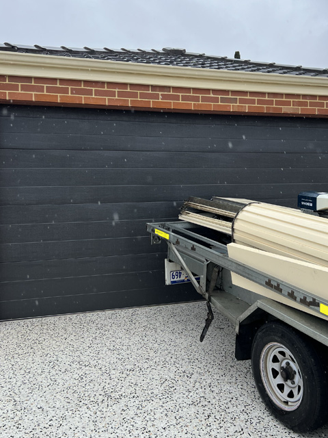 Double Sectional door fitted in Iron Stone™ COLORBOND® with the Settler profile