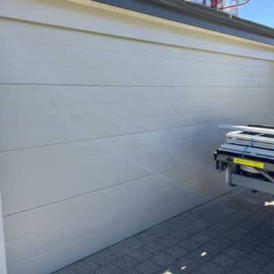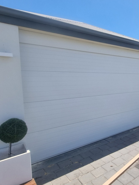 Sectional door fitted in White COLORBOND® with the Cosmopolitan profile.