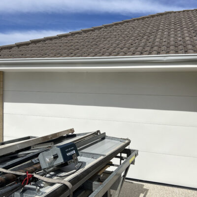 Double Sectional door fitted in Dover White COLORBOND® with the Mediterranean profile.