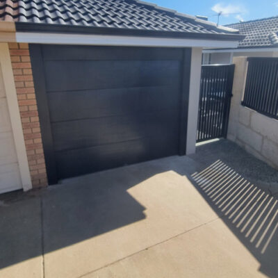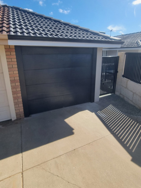 Single Sectional door fitted in Monument COLORBOND® with the Cosmopolitan profile.