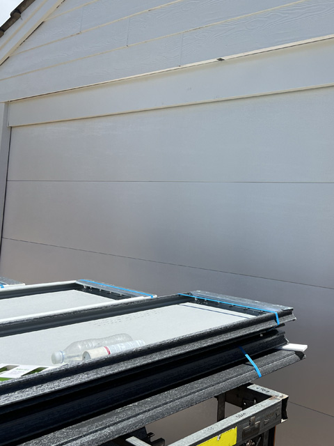 Sectional door fitted in surfmist with the Georgian profile and windows.