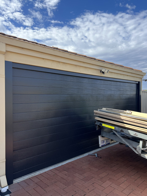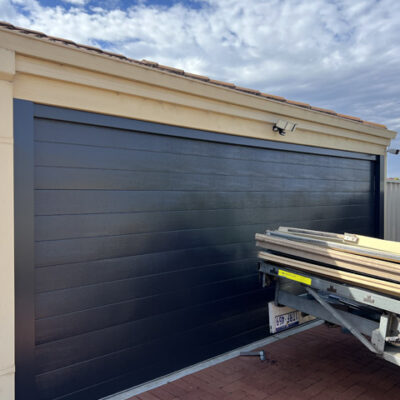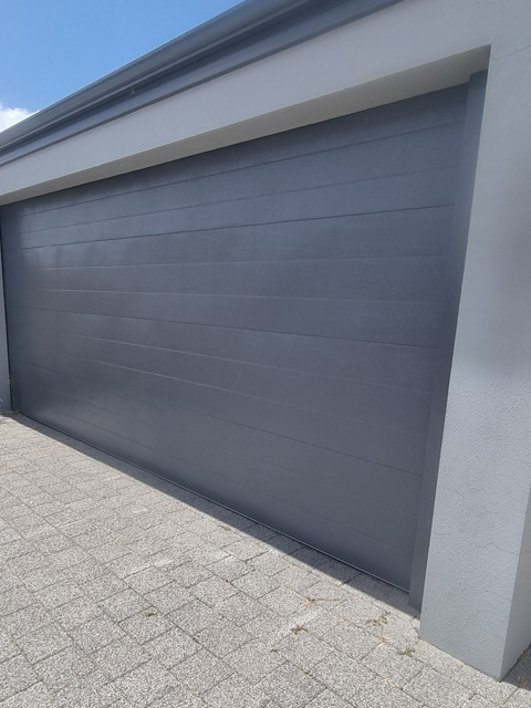 Sectional door fitted in Basalt COLORBOND® with the Cosmopolitan profile.