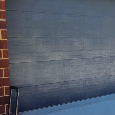 Double Sectional door fitted in Deep Ocean COLORBOND® with the Cosmopolitan profile.