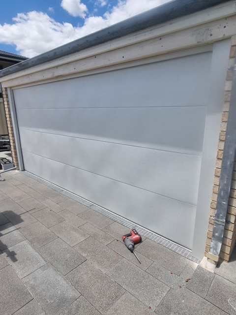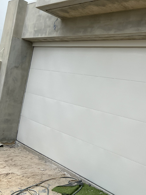 Double Sectional door fitted in Surfmist COLORBOND® with the Mediterranean profile.