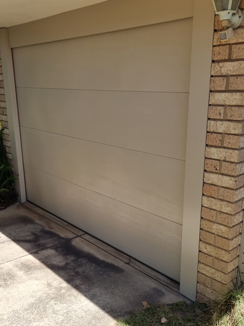 Single Sectional door fitted in Dune™ COLORBOND® with the Settler profile